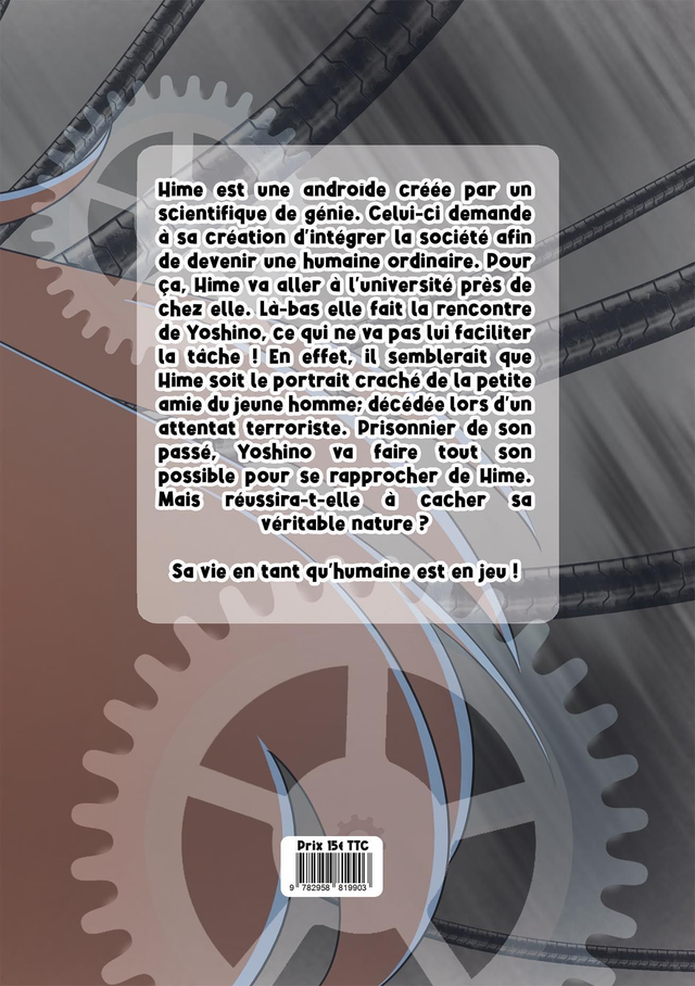 Résumé : Hime est une androïde crée par un scientifique de génie. Celui-ci demande à sa création d’intégrer la société afin de devenir une humaine ordinaire. Pour ça, Hime va aller à l’université près de chez elle. Là-bas, elle fait la rencontre de Yoshino, ce qui ne va pas lui faciliter la tache ! En effet, il semblerait que Hime soit le portrait craché de la petite amie du jeune homme ; décédé lors d’un attentat terroriste. Prisonnier de son passé, Yoshino va faire tout son possible pour se rapprocher de Hime. Mais réussira-t-elle à cacher sa véritable nature ? Sa vie en temps qu’humaine est en jeu !